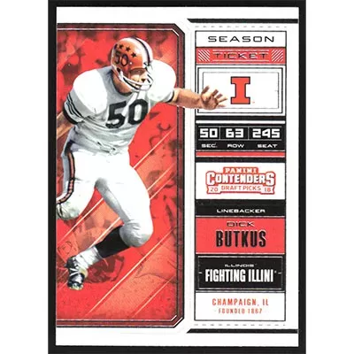 This is a 2018 Panini Contenders Draft Picks Dick Butkus football card. The card is #35 and pictures show condition.