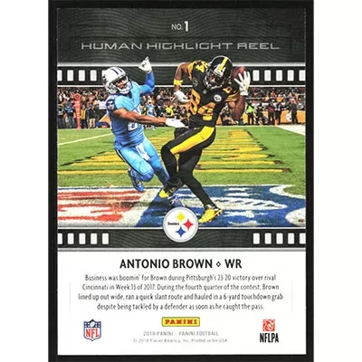 This is a 2018 Panini Human Highlight Reel Antonio Brown football card. The card is #1 and pictures show condition.