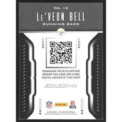 This is a 2018 Panini Playbook BLITZ Le'Veon Bell football card. The card is #14 and pictures show condition.