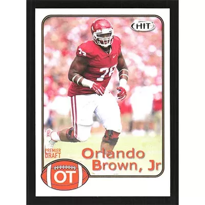 This is a 2018 SAGE HIT Orlando Brown Jr. football card. The card is #9 and pictures show condition.