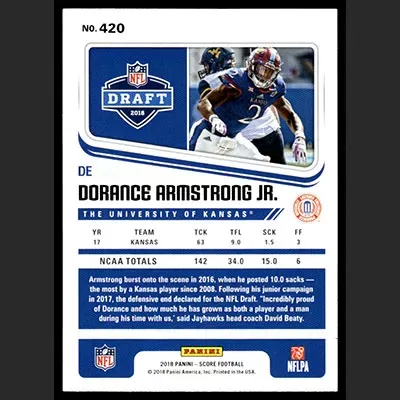 This is a 2018 Score Dorance Armstrong Jr. football card. The card is #420 and is in NM-MT condition.
