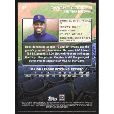 This is a 2018 Stadium Club Dwight Gooden baseball card. The card is #152 and pictures show condition.