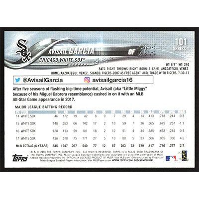This is a 2018 Topps Avisail Garcia baseball card. The card is #101 and pictures show condition.