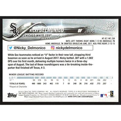 This is a 2018 Topps Nicky Delmonico baseball card. The card is #306 and pictures show condition.