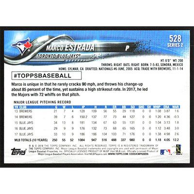 This is a 2018 Topps Marco Estrada baseball card. The card is #528 and pictures show condition.