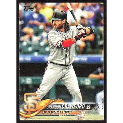 This is a 2018 Topps Brandon Crawford baseball card. The card is #585 and pictures show condition.