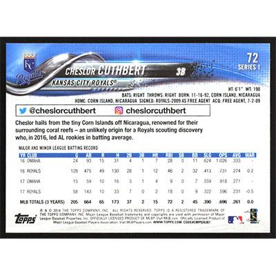 This is a 2018 Topps Cheslor Cuthbert baseball card. The card is #72 and pictures show condition.