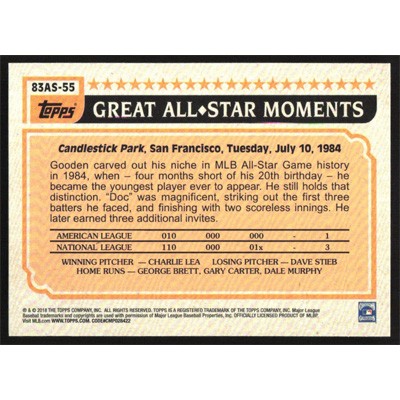 This is a 2018 Topps '83 All-Stars Dwight Gooden baseball card. The card is #83AS-55 and pictures show condition.