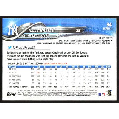 This is a 2018 Topps Todd Frazier baseball card. The card is #84 and pictures show condition.
