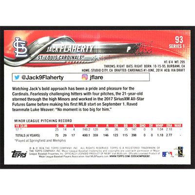 This is a 2018 Topps Jack Flaherty baseball card. The card is #93 and pictures show condition.