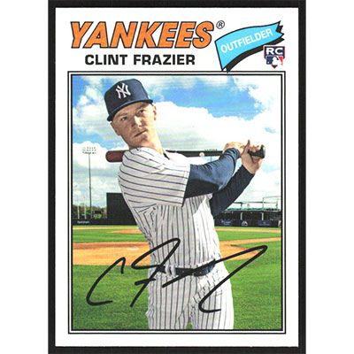This is a 2018 Topps Archives Clint Frazier baseball card. The card is #144 and pictures show condition.