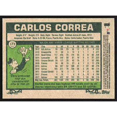 This is a 2018 Topps Archives Carlos Correa baseball card. The card is #173 and pictures show condition.