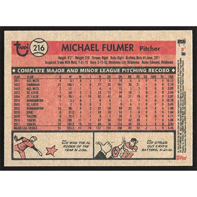 This is a 2018 Topps Archives Michael Fulmer baseball card. The card is #216 and pictures show condition.