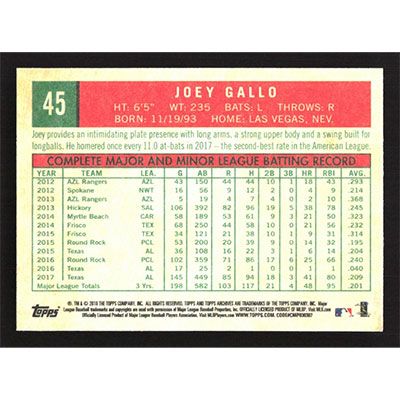 This is a 2018 Topps Archives Joey Gallo baseball card. The card is #45 and pictures show condition.