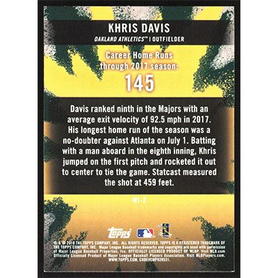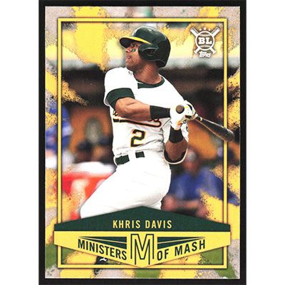 This is a 2018 Topps Big League Ministers of Mash Khris Davis baseball card. The card is #MI-2 and pictures show condition.
