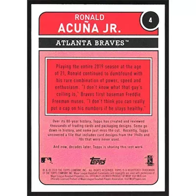 This is a 2018 Topps Brooklyn Collection Orange Ronald Acuña Jr. baseball card. The card is #4 and pictures show condition. This card is limited; #'d 11/25.