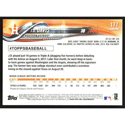 This is a 2018 Topps Chrome J.D. Davis baseball card. The card is #177 and pictures show condition.