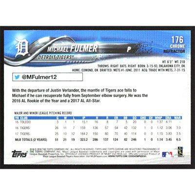This is a 2018 Topps Chrome X-Fractors Michael Fulmer baseball card. The card is #176 and pictures show condition.