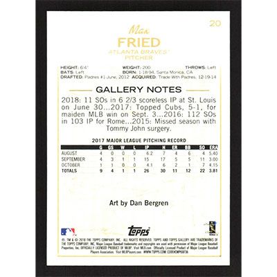 This is a 2018 Topps Gallery Max Fried baseball card. The card is #20 and pictures show condition.