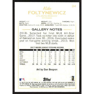This is a 2018 Topps Gallery Mike Foltynewicz baseball card. The card is #24 and pictures show condition.