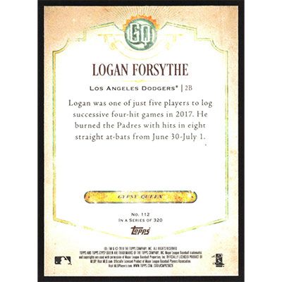 This is a 2018 Topps Gypsy Queen Logan Forsythe baseball card. The card is #112 and pictures show condition.