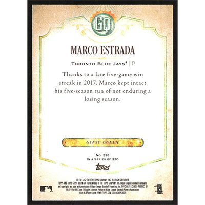 This is a 2018 Topps Gypsy Queen Marco Estrada baseball card. The card is #238 and pictures show condition.