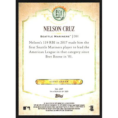 This is a 2018 Topps Gypsy Queen Nelson Cruz baseball card. The card is #297 and pictures show condition.