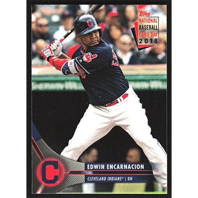 This is a 2018 Topps National Baseball Card Day Edwin Encarnacion baseball card. The card is #4 and pictures show condition.