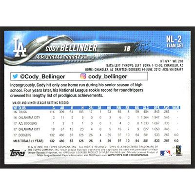 This is a 2018 Topps National League Standouts Cody Bellinger Future Stars baseball card. The card is #NL-2 and pictures show condition. Team(s): Los Angeles Dodgers