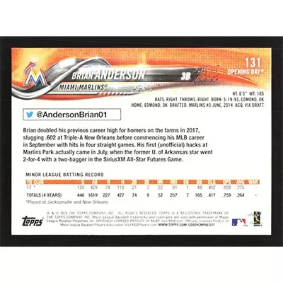 This is a 2018 Topps Opening Day Brian Anderson baseball card. The card is #131 and pictures show condition.