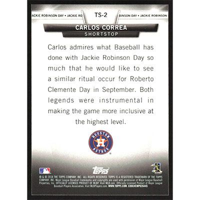 This is a 2018 Topps Salute Carlos Correa baseball card. The card is #TS-2 and pictures show condition.