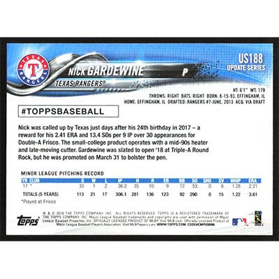 This is a 2018 Topps Update Nick Gardewine baseball card. The card is #US188 and pictures show condition.