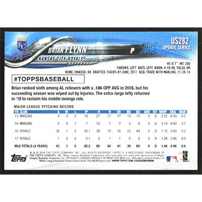 This is a 2018 Topps Update Brian Flynn baseball card. The card is #US282 and pictures show condition.
