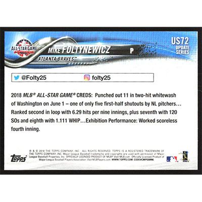 This is a 2018 Topps Update Mike Foltynewicz All-Star baseball card. The card is #US72 and pictures show condition.