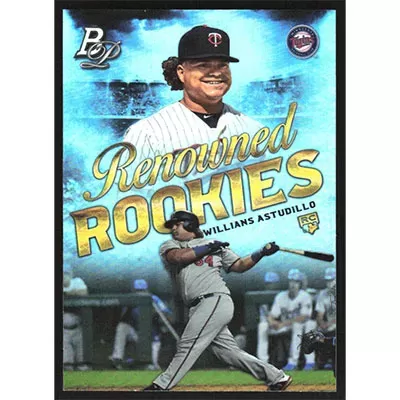 This is a 2019 Bowman Platinum Renowned Rookies Willians Astudillo baseball card. The card is #RR-2 and pictures show condition. Team(s): Minnesota Twins Rookie Card (RC)