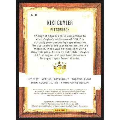 This is a 2019 Diamond Kings Kiki Cuyler baseball card. The card is #41 and pictures show condition.