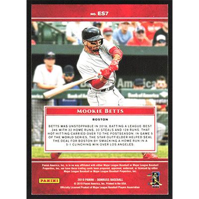 This is a 2019 Donruss Elite Series Diamond Mookie Betts baseball card. The card is #ES7 and pictures show condition.
