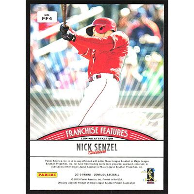 This is a 2019 Donruss Franchise Features Pink Fireworks Kris Bryant and Nick Senzel baseball card. The card is #FF4 and pictures show condition. Team(s): Chicago Cubs/Cincinnati Reds