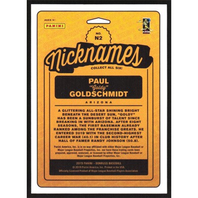 This is a 2019 Donruss Nicknames Pink Fireworks Paul Goldschmidt baseball card. The card is #N2 and pictures show condition. Team(s): Arizona Diamondbacks