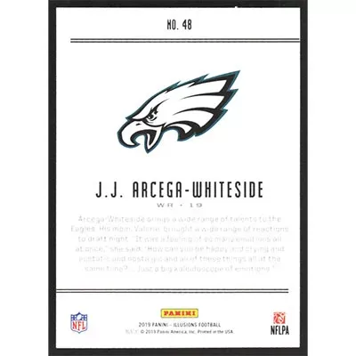 This is a 2019 Panini Illusions J.J. Arcega-Whiteside football card. The card is #48 and pictures show condition.