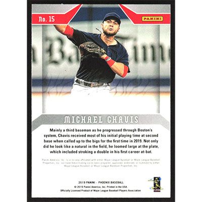 This is a 2019 Panini Phoenix Michael Chavis baseball card. The card is #15 and pictures show condition.