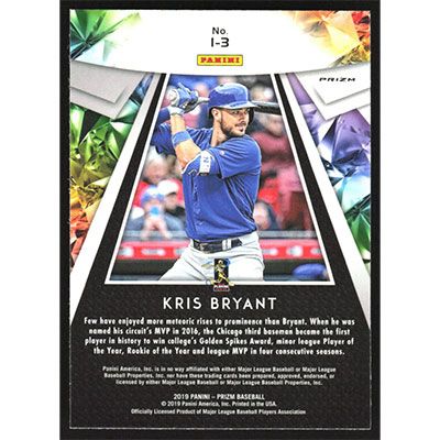 This is a 2019 Panini Prizm Illumination Silver Kris Bryant baseball card. The card is #I-3 and pictures show condition.
