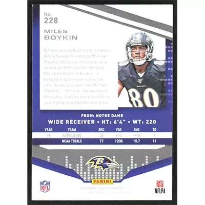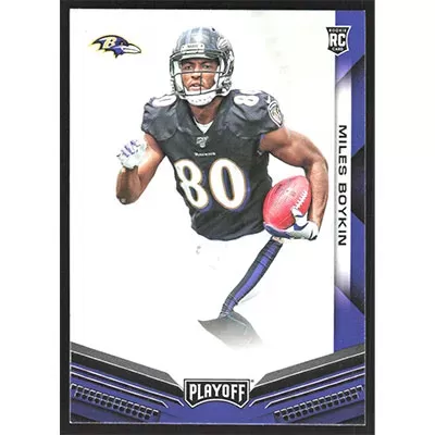 This is a 2019 Playoff Miles Boykin football card. The card is #228 and pictures show condition.
