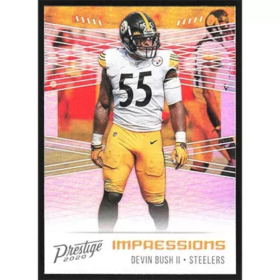 This is a 2019 Prestige Impressions Devin Bush II football card. The card is #IM-DB and pictures show condition.