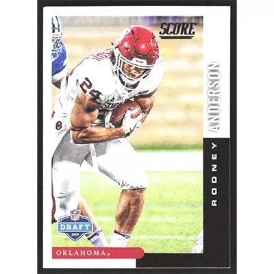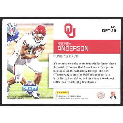 This is a 2019 Score NFL Draft Rodney Anderson football card. The card is #DFT-26 and pictures show condition.