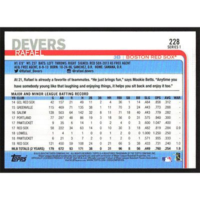 This is a 2019 Topps Rafael Devers baseball card. The card is #228 and pictures show condition.