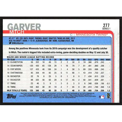 This is a 2019 Topps Mitch Garver baseball card. The card is #277 and pictures show condition.