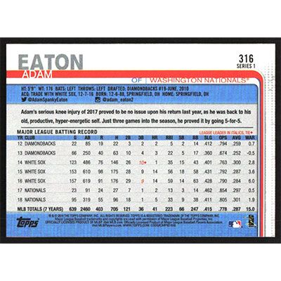 This is a 2019 Topps Adam Eaton baseball card. The card is #316 and pictures show condition.