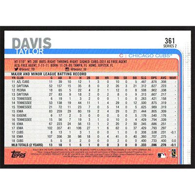 This is a 2019 Topps Taylor Davis baseball card. The card is #361 and pictures show condition.