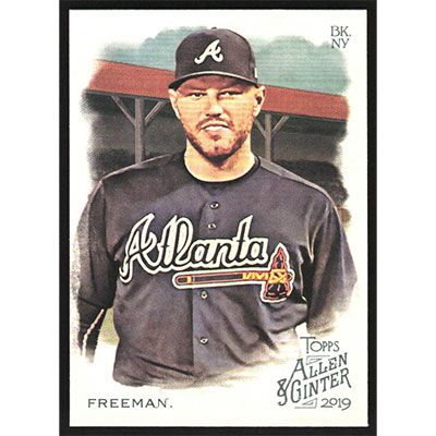 This is a 2019 Topps Allen & Ginter Freddie Freeman baseball card. The card is #15 and pictures show condition.